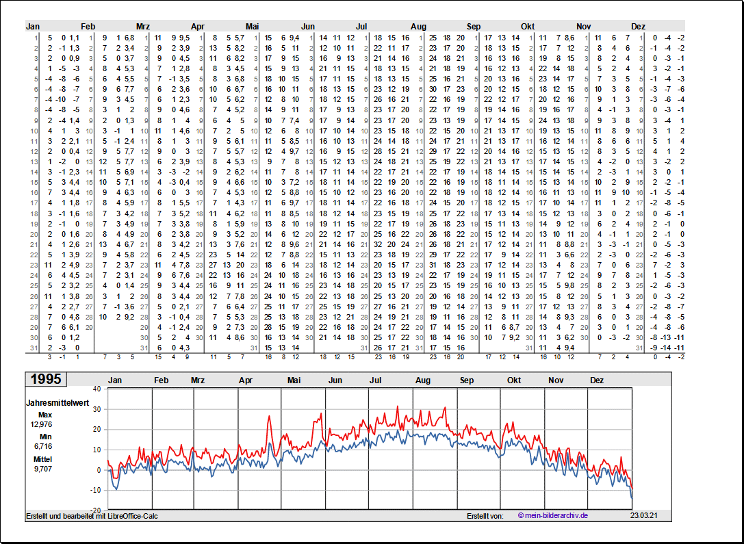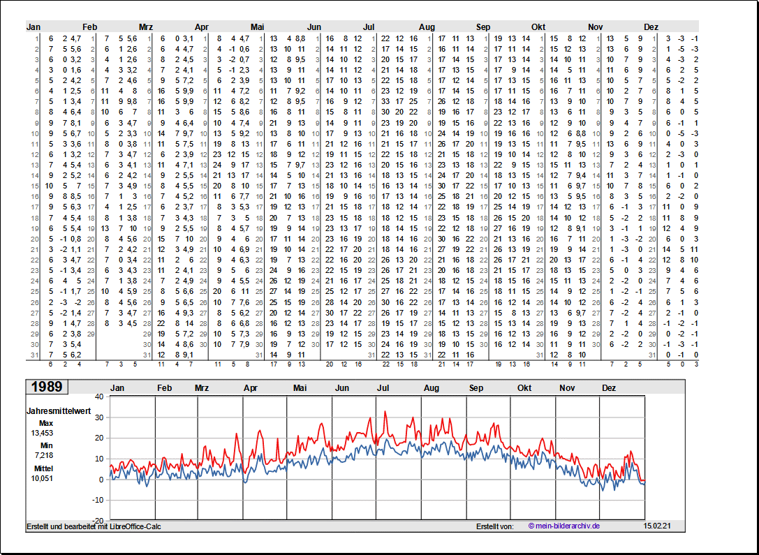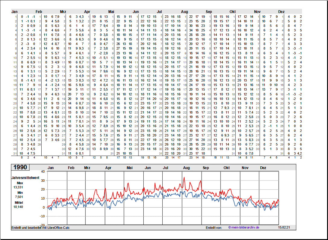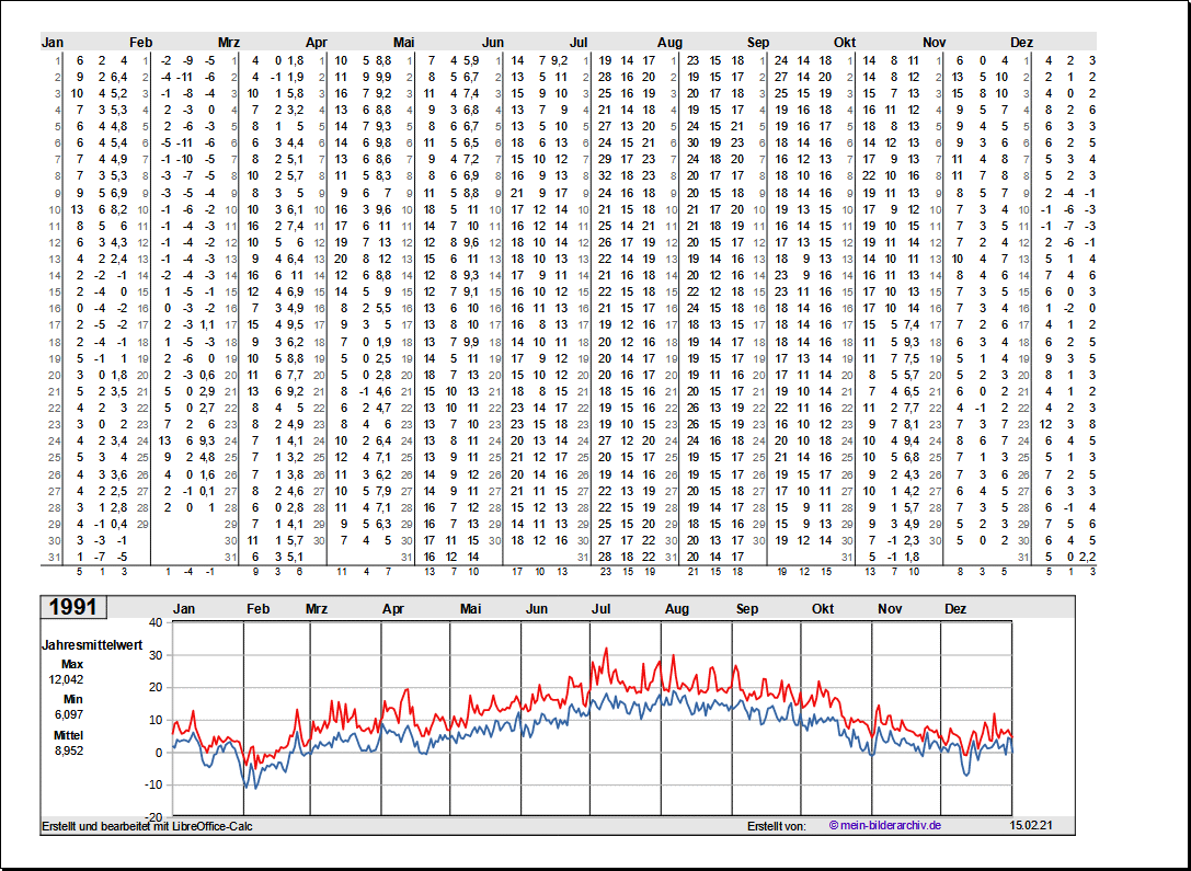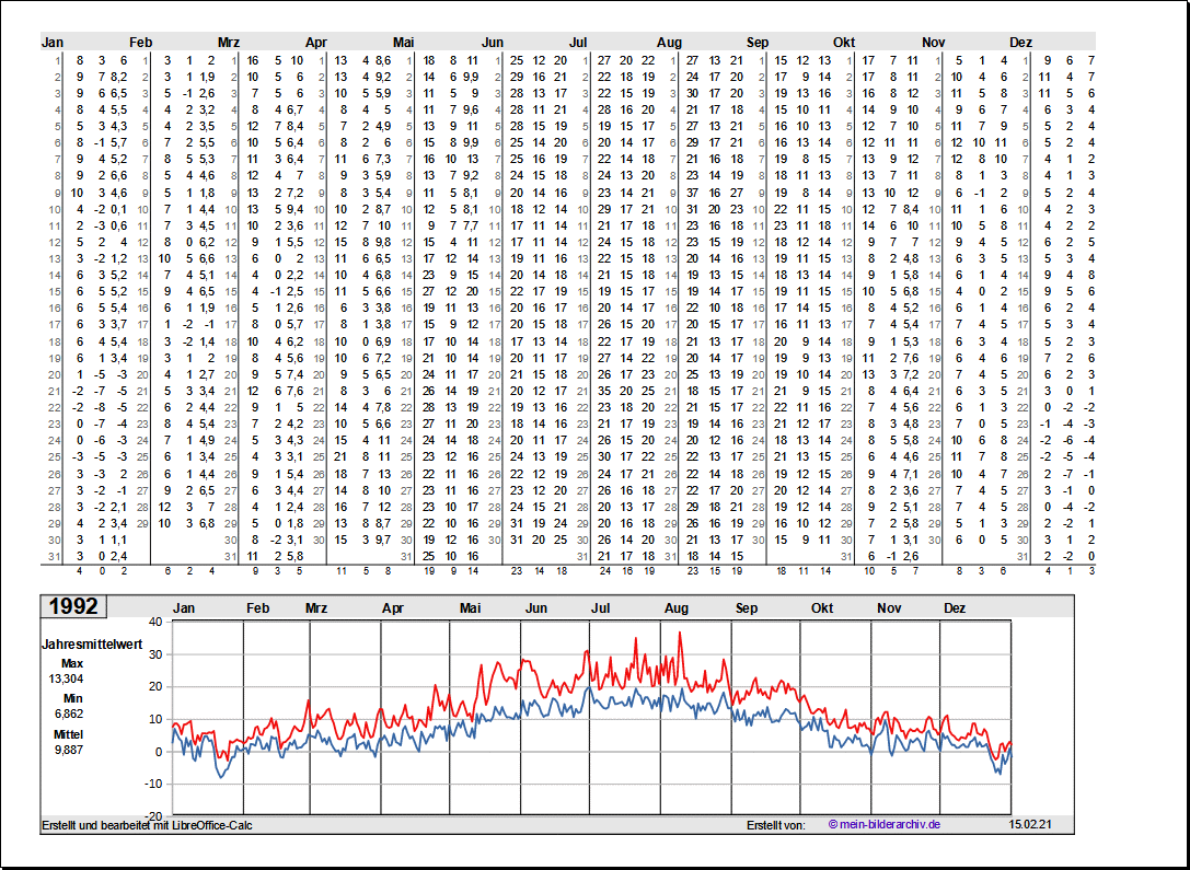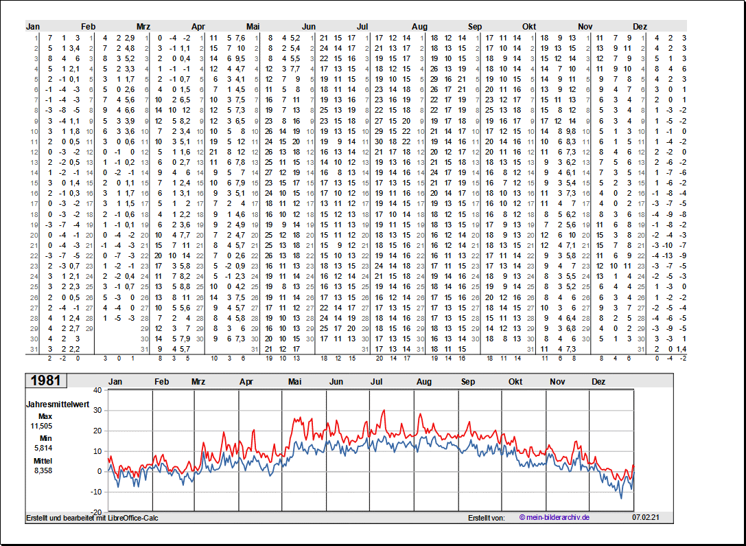 Temperaturen in Norddeutschland 1981 - 1995Grafische Darstellung der Jahresverläufe.Referenzort Rostock/Warnemünde