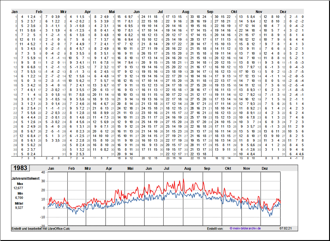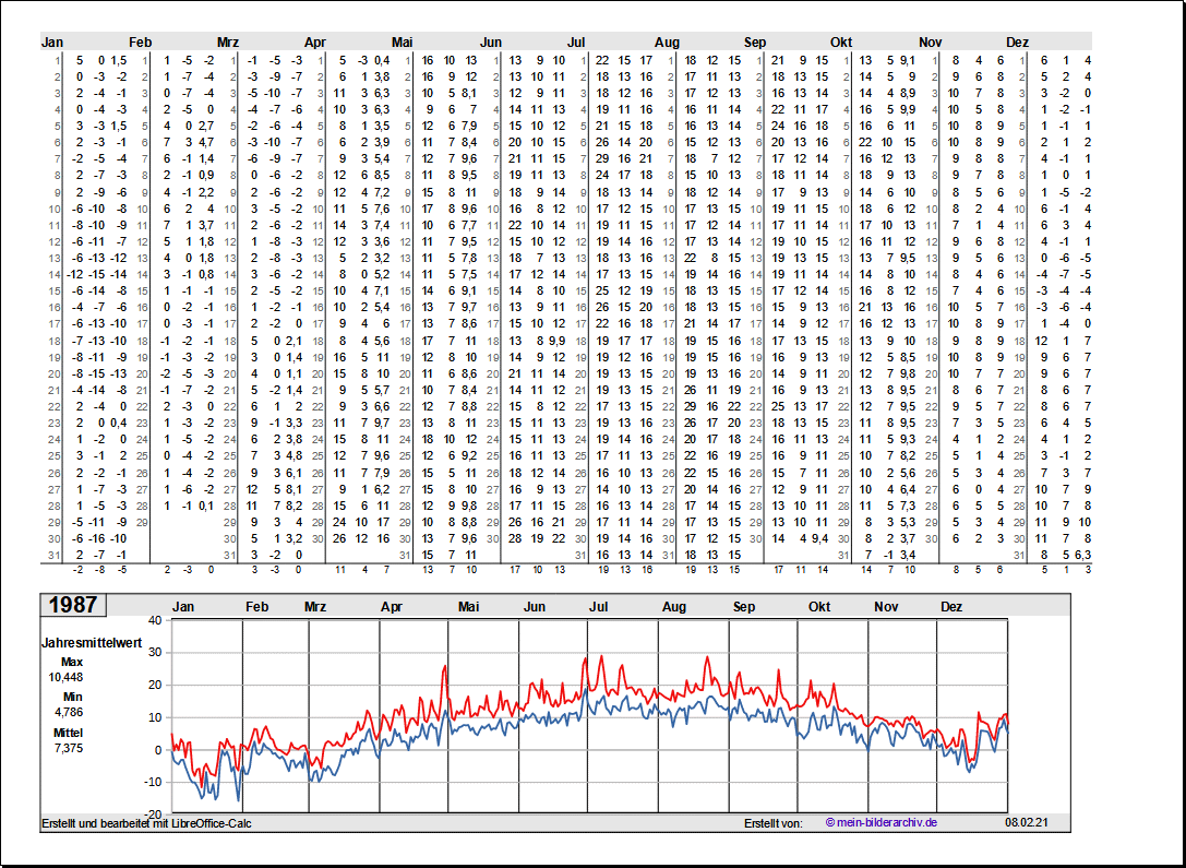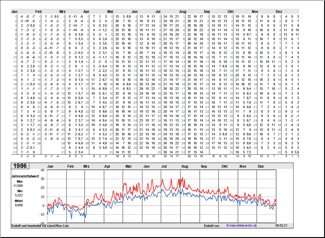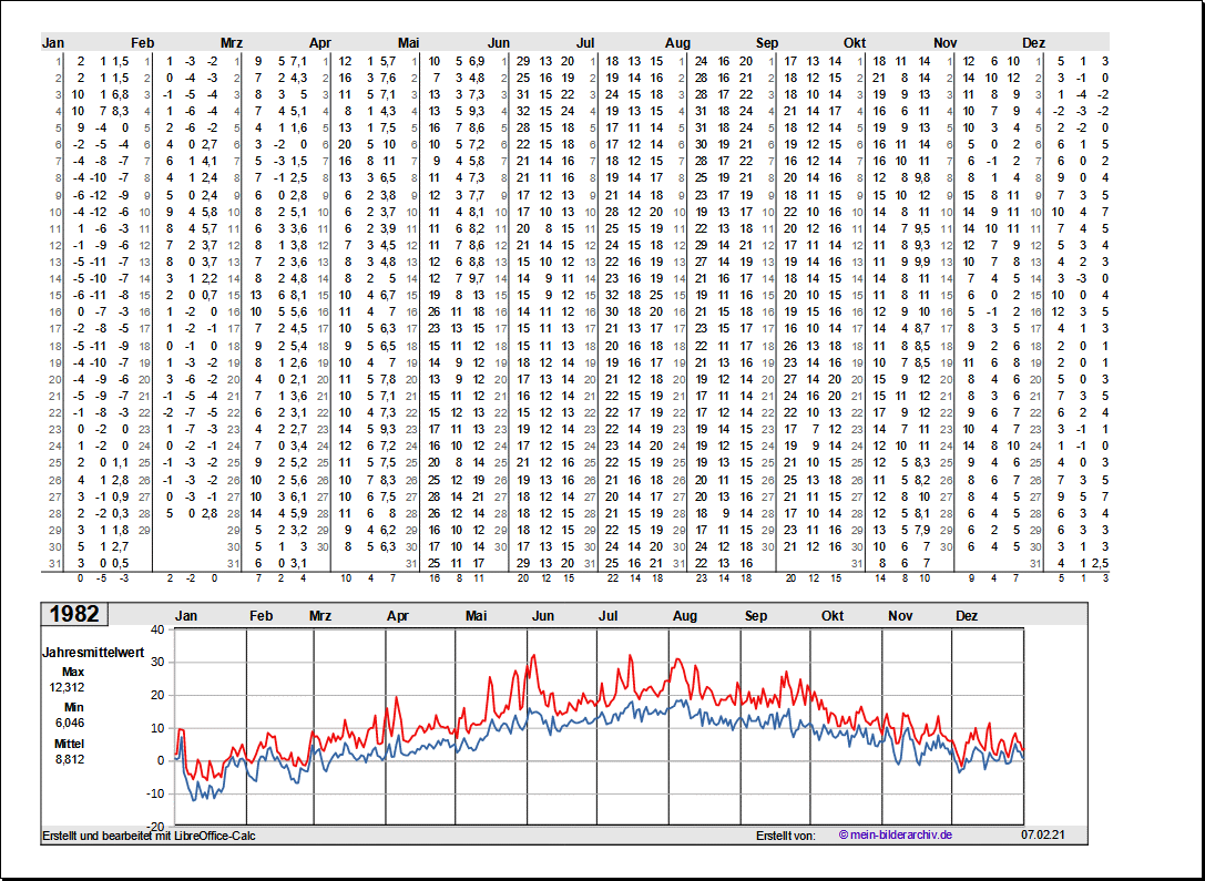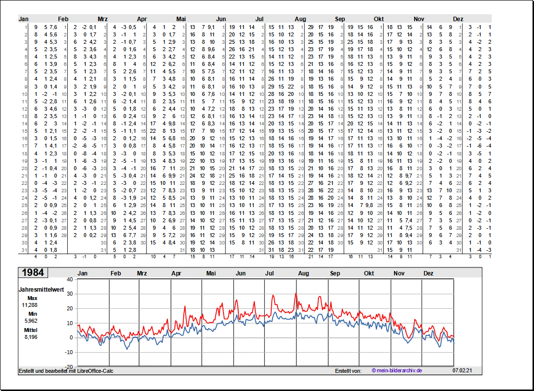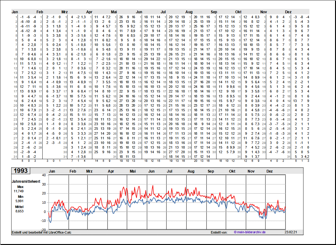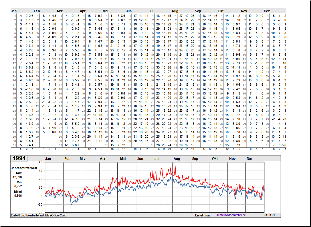 Temperaturen in Norddeutschland 1981 - 1995Grafische Darstellung der Jahresverläufe.Referenzort Rostock/Warnemünde